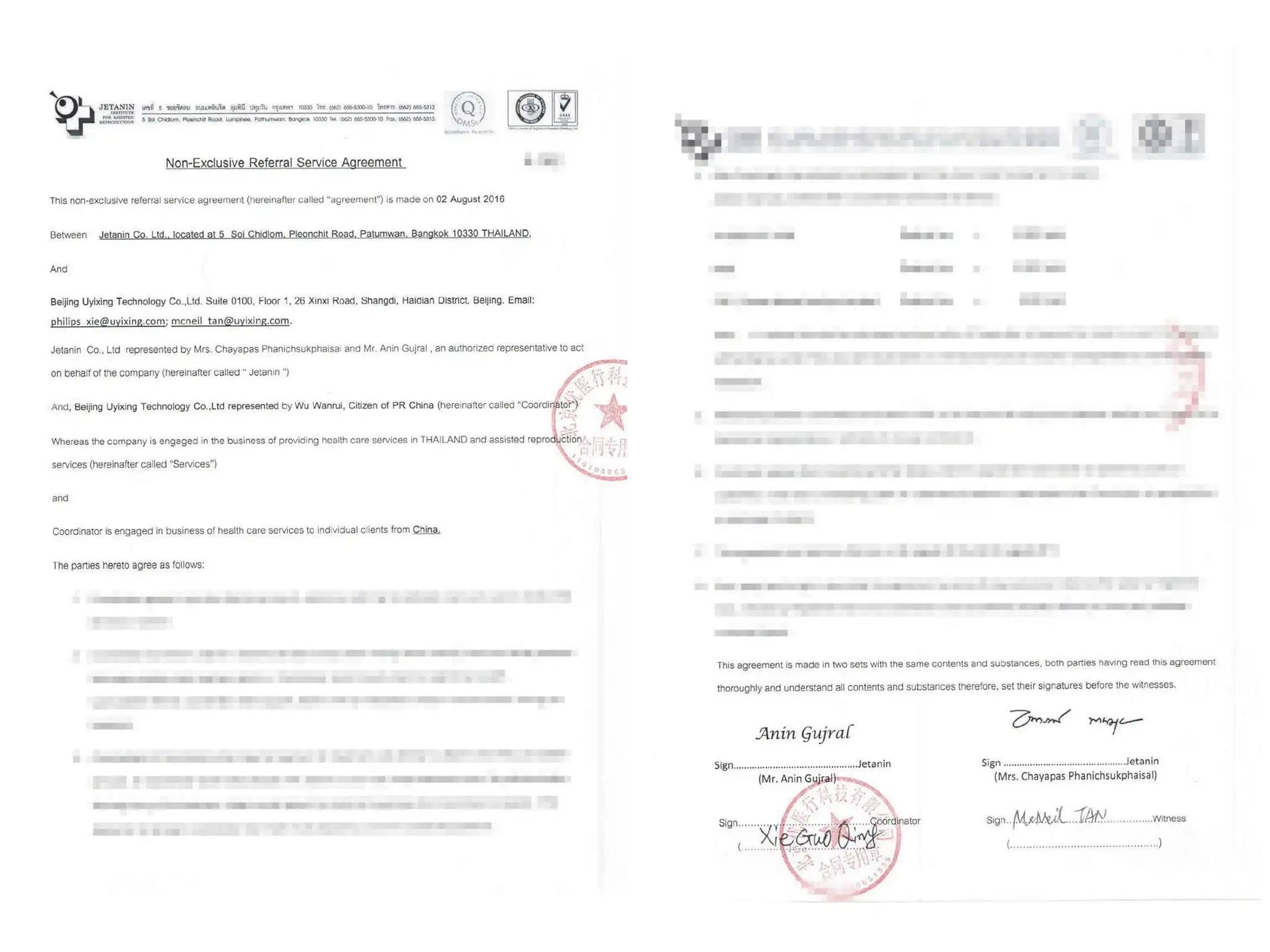 泰国杰特宁试管婴儿中心授权协议 |