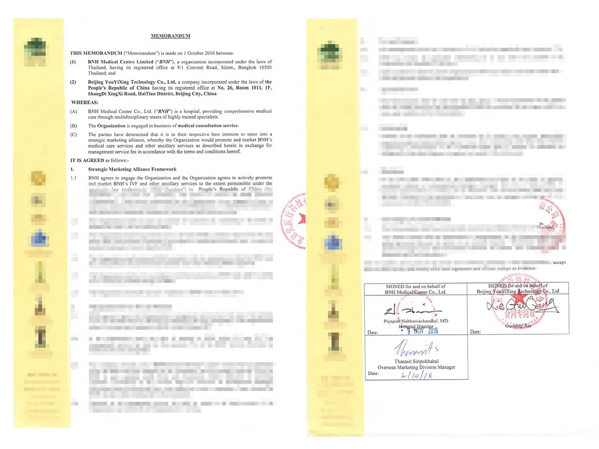 泰国BNH医院授权协议 |